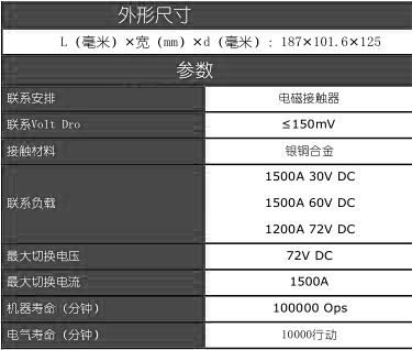 CZJ-1500S直流接触器应用于通讯电源,工程机械,电动叉车,汽车,火车,UPS等电控系统。