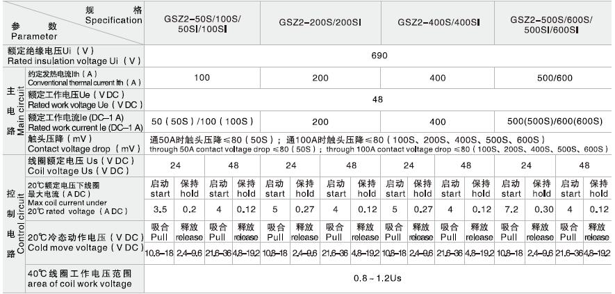 GSZ2-50S直流接触器适用于蓄电池车辆的启动、停止和电动叉车、牵引车、电信、计算机等领域的电源切换及不间断电源系统,也可用于旁路低压变频器中限流电阻。