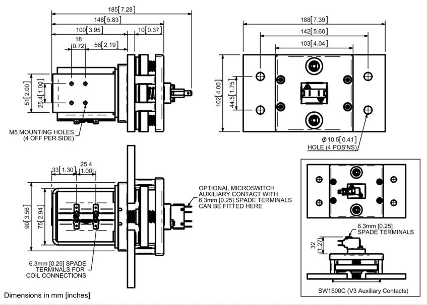 SW1502具有双重断裂主触点和银合金尖端,这些尖端具有耐焊接性,耐磨损性和导电性能优异。主触点上的镀银是SW1502的标准配置,但可以选择将其从规范中排除。SW1502可以垂直或水平安装母线,但如果垂直安装,线圈应位于底部。如果顶部需要线圈,我们可以调整接触器来弥补这一点。可选的附加装置包括辅助开关,支架,线圈表面处理和磁性锁定,使接触器保持闭合状态,同时不消耗线圈功率。
